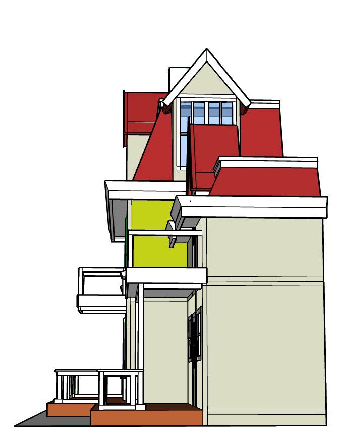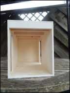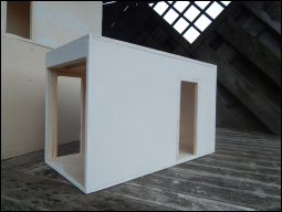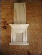 Het materiaal wat ik heb gebruikt voor de opbouw zijn grenen latjes van 35 mm x 4 mm voor de kap en 9 mm x 27 mm voor de haard.