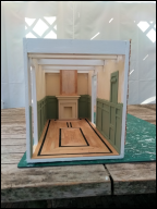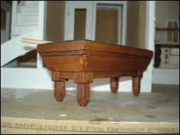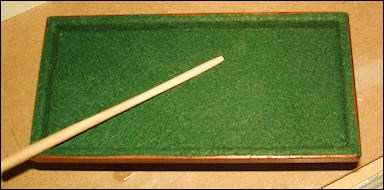 Het biljart is gemaakt van grenen latten. De afmeting is 17,5 cm lang en 8,7 cm breed.