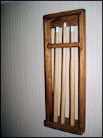 Foto 1 en 2 : Het rek voor de biljartkeu's.