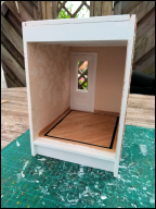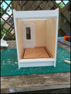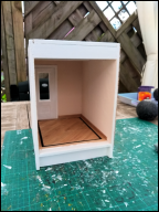 Heb toch een kast gemaakt in de eetkamer (wat niet de bedoeling was). Deze ook weer van knutselhoutjes gemaakt. Deze kast moet nog geschilderd worden...