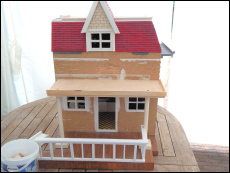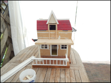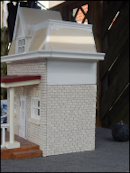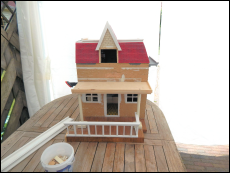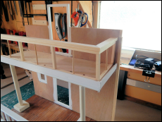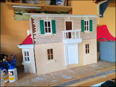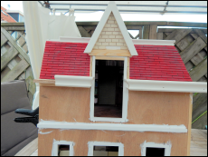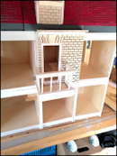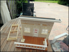 Ik ben begonnen met het deel van de overloop op de eerste verdieping, dit om hier een deurkozijn te maken met een klein balkonnetje. Het probleem is, kwam ik al gauw achter dat de gevels goed vast moest komen te zitten anders zou het er uitvallen. Dus daarom een oplossing gezocht waar ik het bovenin mee kon vastzetten.