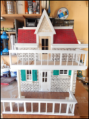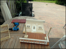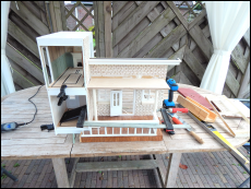 Foto 26 : Het geheel inelkaar gezet incl. de luiken aangebracht. Foto 27 : Ook de deur in de bibliotheek gemaakt en geplaatst.