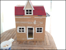 Foto 1 : De gevels nog niet bewerkt alleen deurkozijn, balkon en bodem goot. Foto 2 : gevels bruin geschilderd dit om de voegen beter tot zijn recht te laten komen.