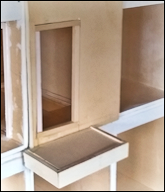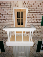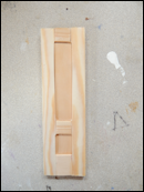 De maten van het kozijn is 7,5 cm breed en 20 cm hoog.Voor de omlijsting van de voordeur heb ik dezelfde profiellijst als voor de goot gebruikt. (zie foto 2.)
