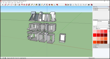 (klik voor de vergroting) SketchUp is een gratis 3d tekenprogramma. Ik heb de maten van het poppenhuis in het programma overgenomen, dus de hoogte is 25cm en in het programma ook.