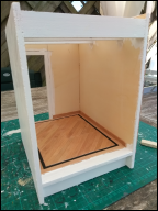 Heb toch een kast gemaakt in de eetkamer (wat niet de bedoeling was). Deze ook weer van knutselhoutjes gemaakt. Deze kast moet nog geschilderd worden...