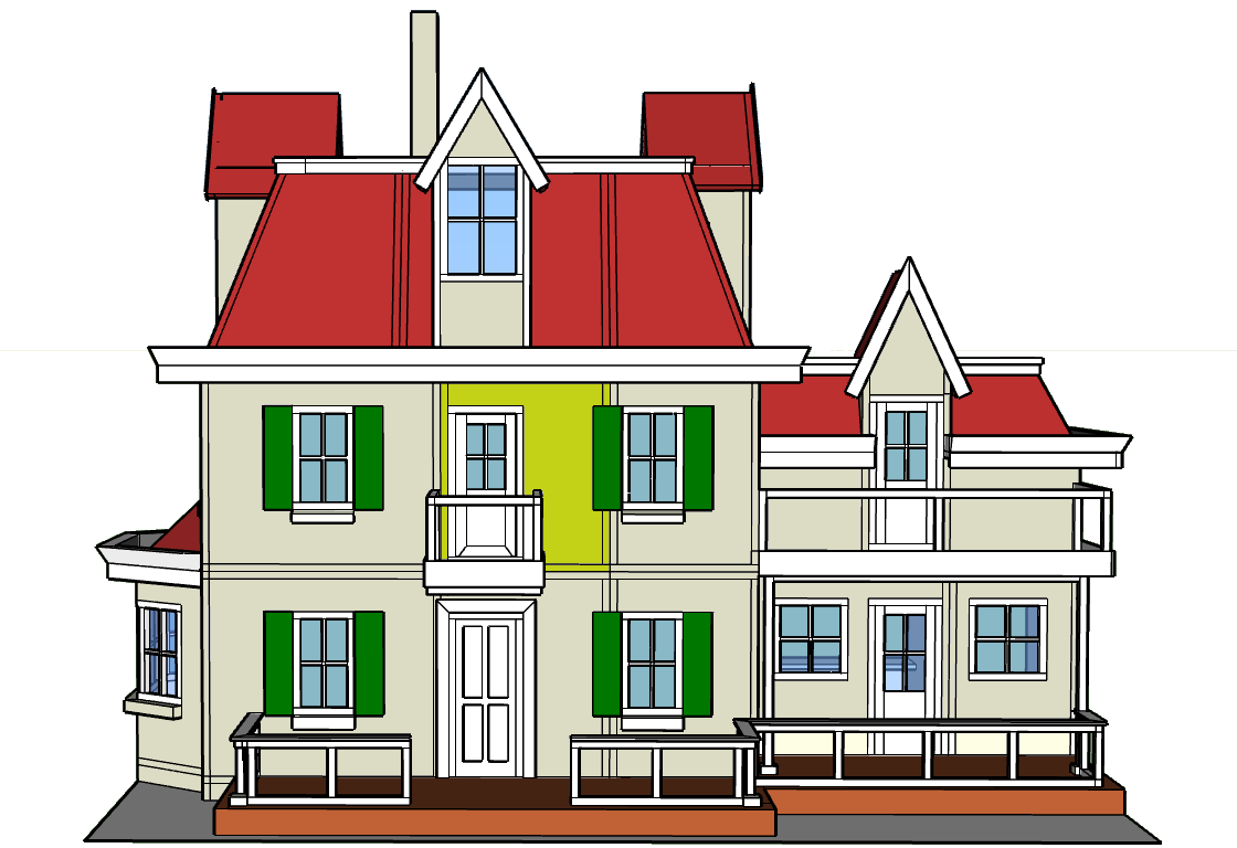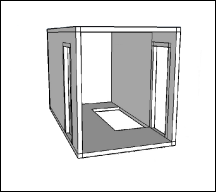 Het heeft 2 deurkozijnen, een voor de slaapkamer en een voor de biljartkamer-bibliotheek. In de losse gevel van het hoofdgebouw zit een raamkozijn met roeden.
